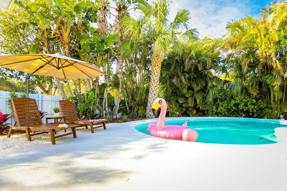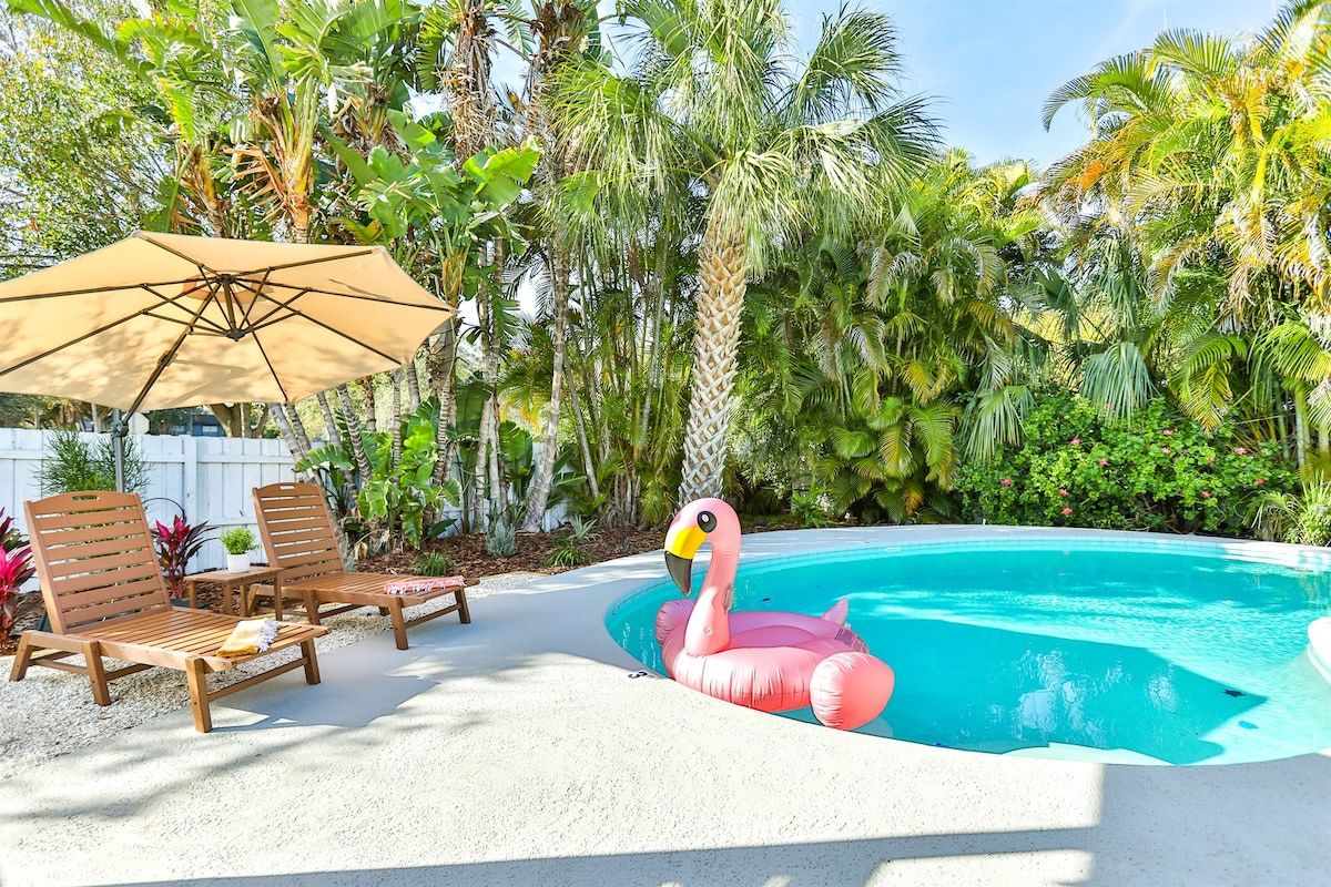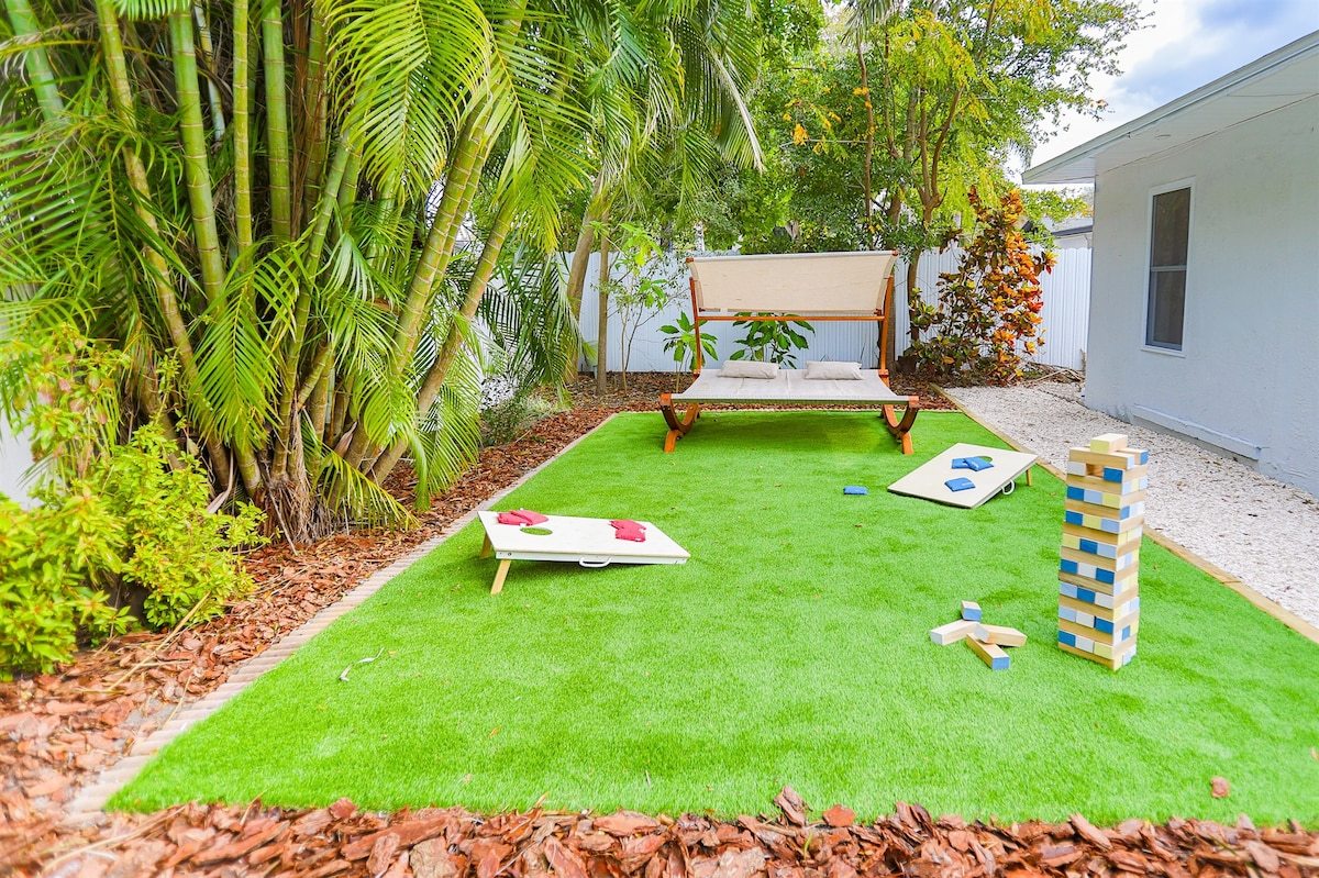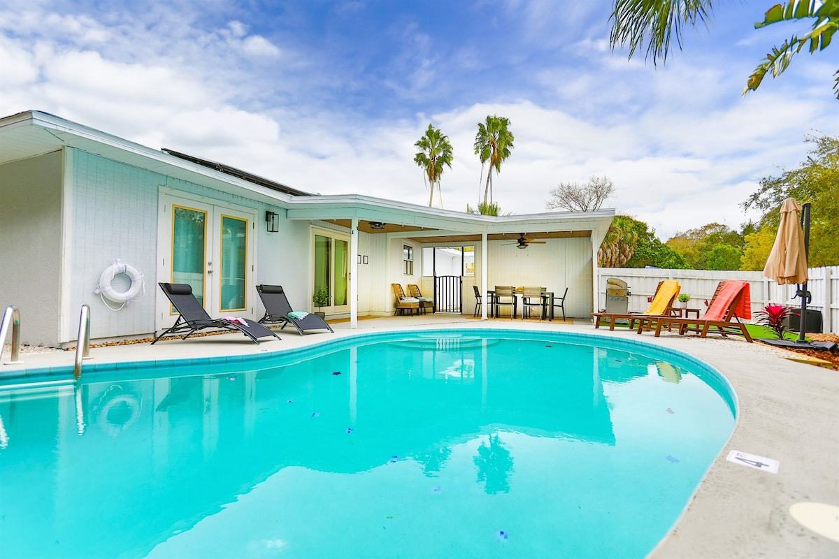 Paradiso Largo is your private oasis in Florida! Our solar-powered pool home near the beach has everything you will need in your holiday here in Clearwater. Immerse yourself in the heated pool's refreshing waters or enjoy friendly competition on the golf putting green. The beautifully decorated interior offers a cozy retreat, while bikes and games provide family fun. Sustainable and stylish, our home invites you to relax and make lasting memories in this perfect blend of luxury and recreation.