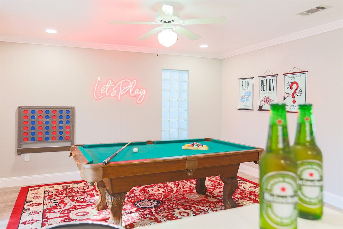 • Game room with Pool Table and Life Size Games!