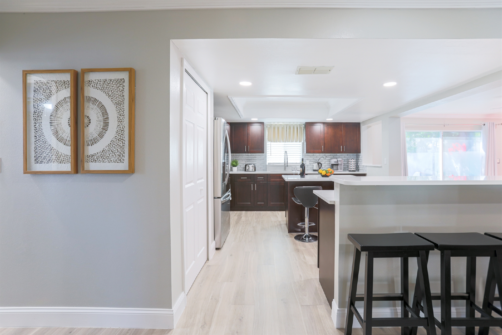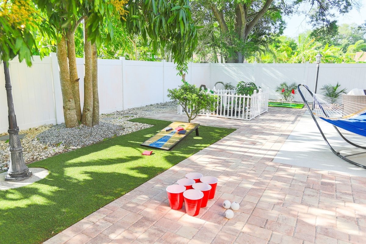 This is a beautiful fully renovated home with 3 bedrooms and 2 bathrooms. It has a great living area with a large flat screen smart TV and plenty of seating spaces, a state of the art kitchen, a charming dining room, a game room and a spacious outdoor area.