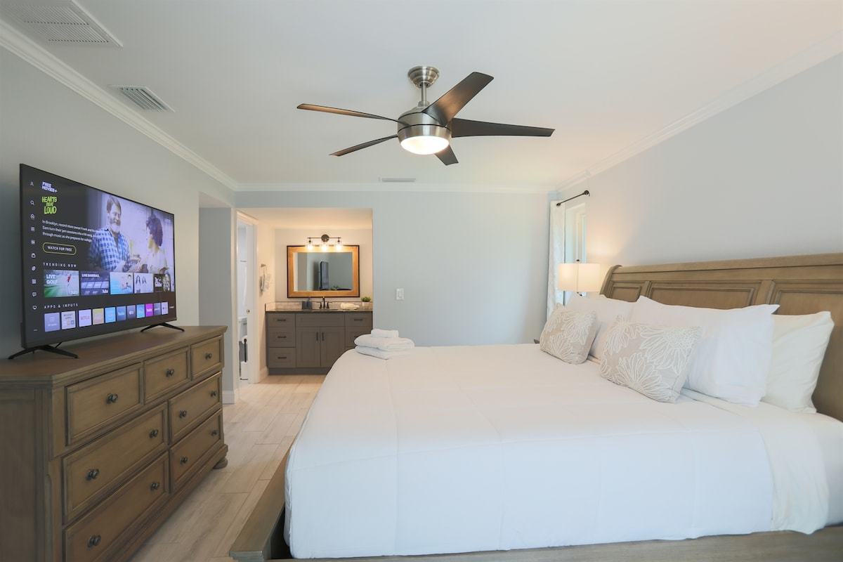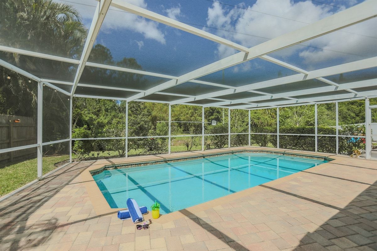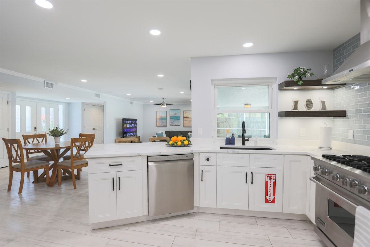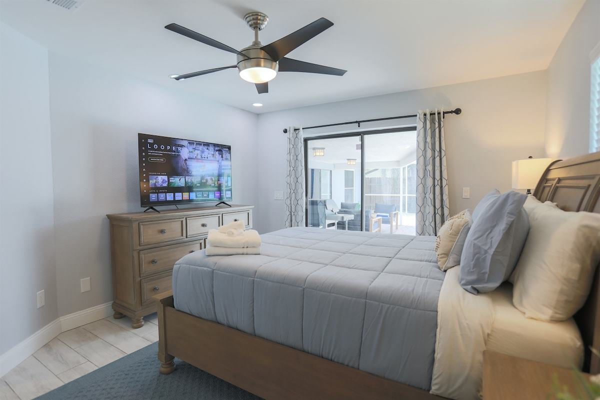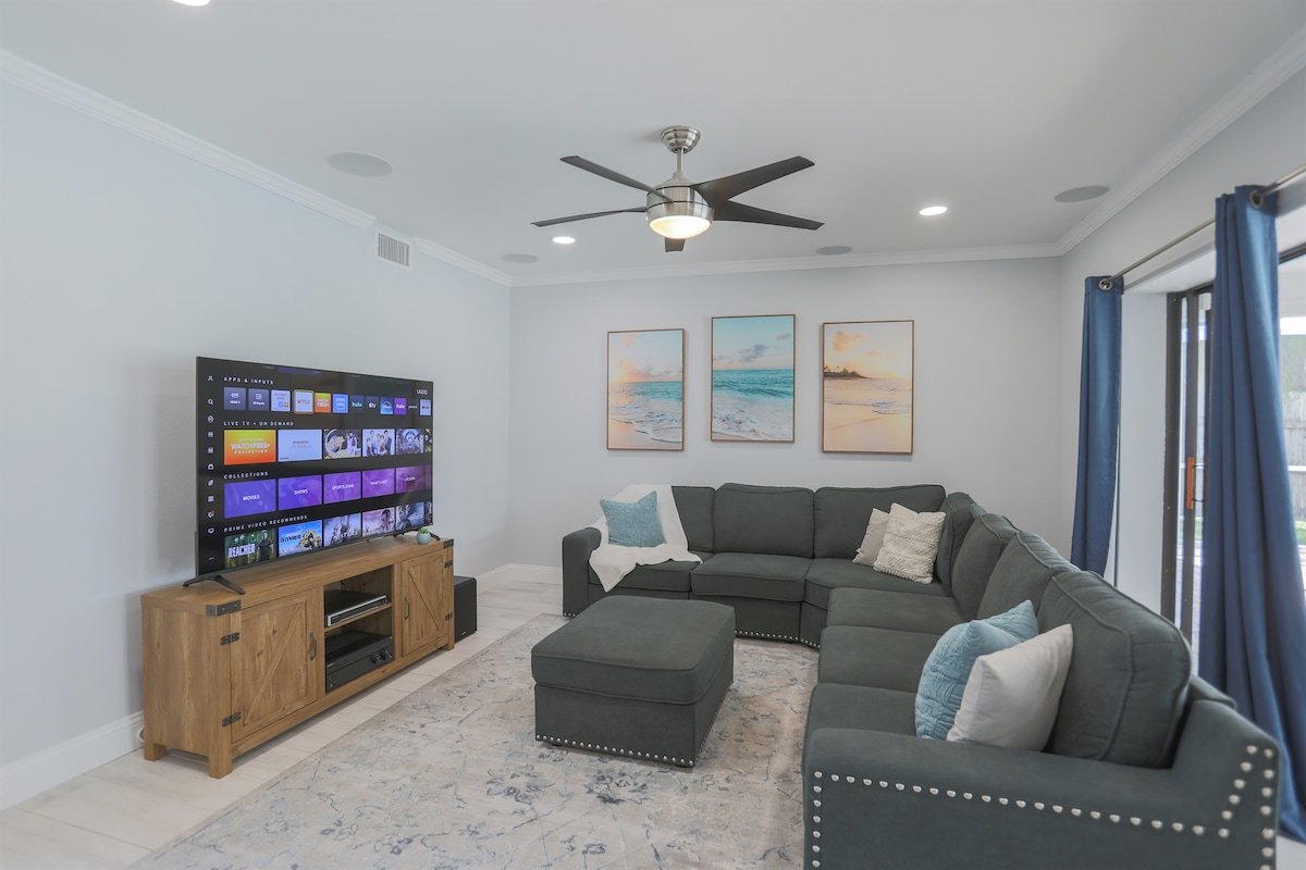 Relax at Sunset Poolhouse — a fully renovated 4 bedrooms retreat in Clearwater with a private pool, firepit, BBQ grill, outdoor seating, games, and sunset views over a serene creek (no rear neighbors!). Enjoy Xbox 360 in the bunk bed kids' room, smart TVs in all bedrooms, a full kitchen, and ample parking. Just 15 mins to Clearwater, Belleair, and Indian Rocks Beach!