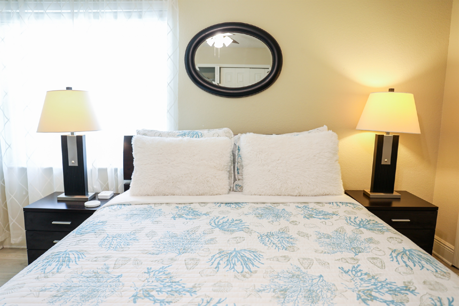 With two spacious bedrooms, this condo can comfortably accommodate up to 4 guests. The master bedroom features a luxurious king-size bed and an ensuite bathroom with a tub shower combo. The second bedroom offers a queen-size bed and is conveniently located next to the second bathroom, complete with a bathtub. Both bedrooms are adorned with stylish furnishings, high-quality linens, and ample storage space for your belongings.
